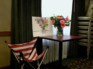 We plan to drive back all day Wednesday, and if we are still kicking, get up on thursday to join Tim for a paint-out day in Eureka springs...with him 'off the clock' painting for himself 'alla prima'. Be hard not to watch him, but just fun to be invited! Let's see, drive 13 hours (time difference), get up and leave the house on thurs am at 8 to 'catch the light' in Eureka around 9. works for me!